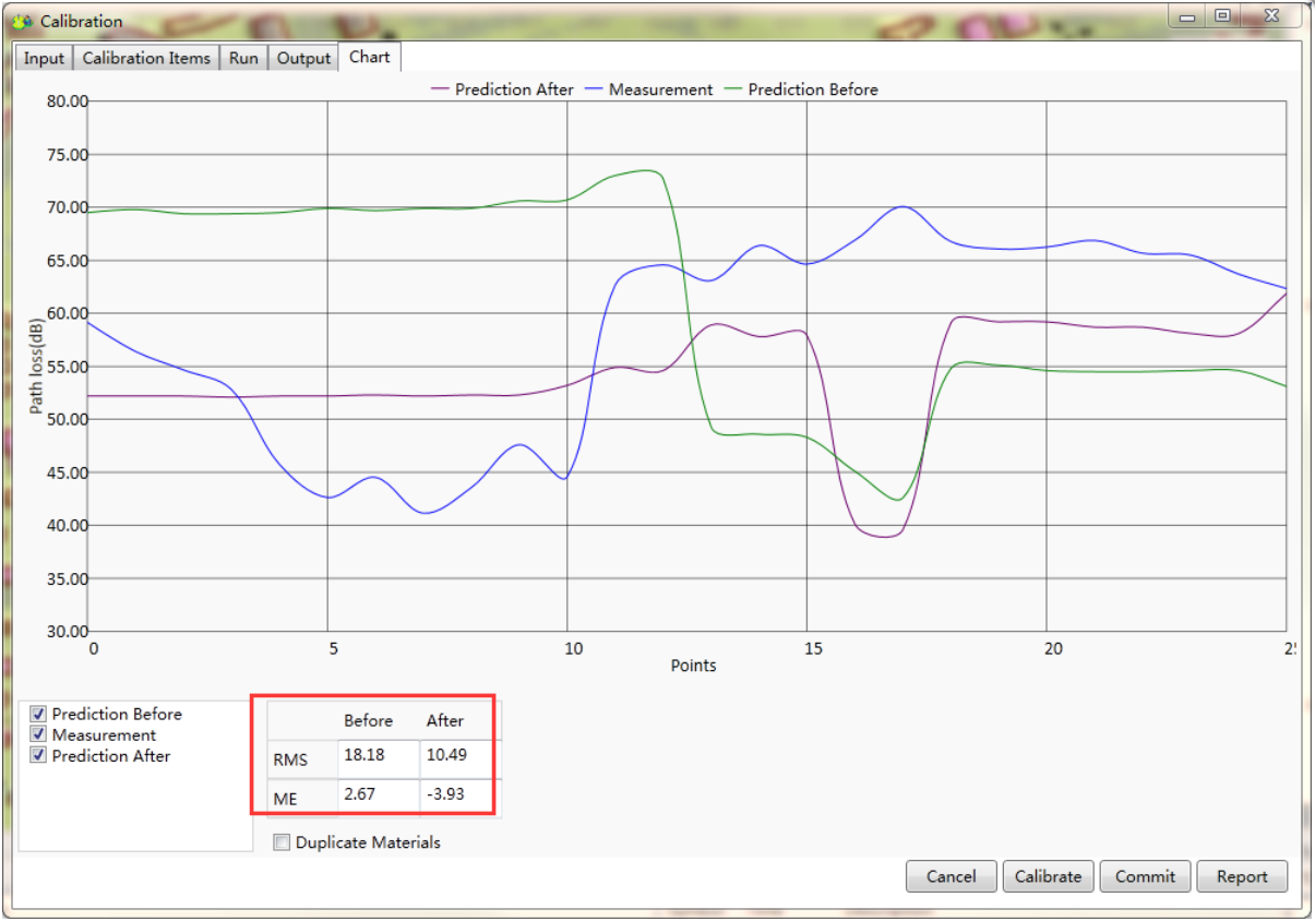 6. Tick Prediction Before, Measurement, and Prediction After to compare the measurement and prediction before and after calibration.