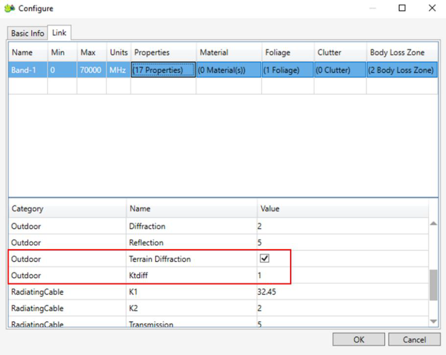 Figure 25-75: Foliage and terrain diffraction parameter before calibration