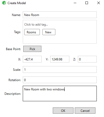 After you fill in the Model details, click OK , then the Model is created and added to the models library under the created tags.