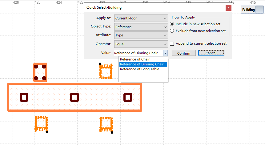 and the Quick select window will pop up where you can adjust the filters and select the required models. Set the Object type as Reference and Attribute as Type, then you can choose the Model from the Value drop down list.